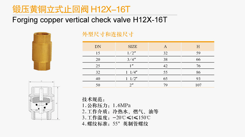 鍛壓黃銅立式止回閥 H12X-16T